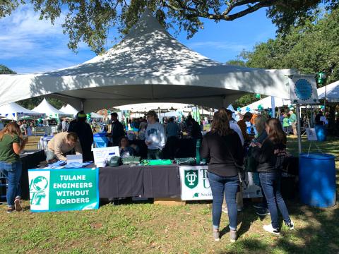 SSE was well represented in tailgating village before the Tulane vs. Tulsa game on Saturday, November 2nd. Current students, alumni, Board of Advisors members, faculty, and staff enjoyed free food, free beverages, and great company on the beautiful sunny fall day! Dean Foster's dog, Brie, even made an appearance in her Tulane sweater. SSE Student Government and Science and Engineering Honors Society members staffed the swag sales table, generating funds to support their programming throughout the year. Roll Wave!