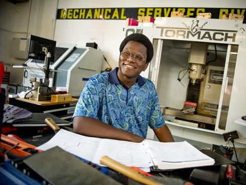 Johnson is also a Maker Ninja, as student workers are called at the Scot Ackerman Makerspace. These students ensure the safe and knowledgeable operation of tools such as laser cutters, water jet cutters, CNC milling machines, CNC lathes, 3D printers and traditional hand and power tools.