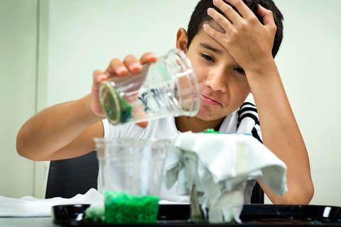 Nicholas Aldana reacts to the unfavorable outcome of his first attempt to design and build a prototype for a water filtration system. The project is part of a course titled "Water, Water Everywhere: Using LEGO Robots to Change How We Find, Use and Dispose of Water,” one of several courses of study in the Tulane Summer Enrichment Institute on the uptown campus. The pre-college residential program allows middle and high school students to explore the latest technology and spend part of their summer in advanced STEM courses ranging from robotics to environmental science.