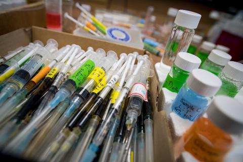 In the lab of Kyriakos Papadopoulos, in the Department of Chemical and Biomolecular Engineering, researchers experiment with various crude oil samples and chemicals (pictured) in search of ways to treat crude oil-contaminated sand using an environmentally safe approach.